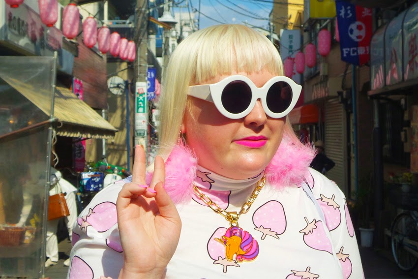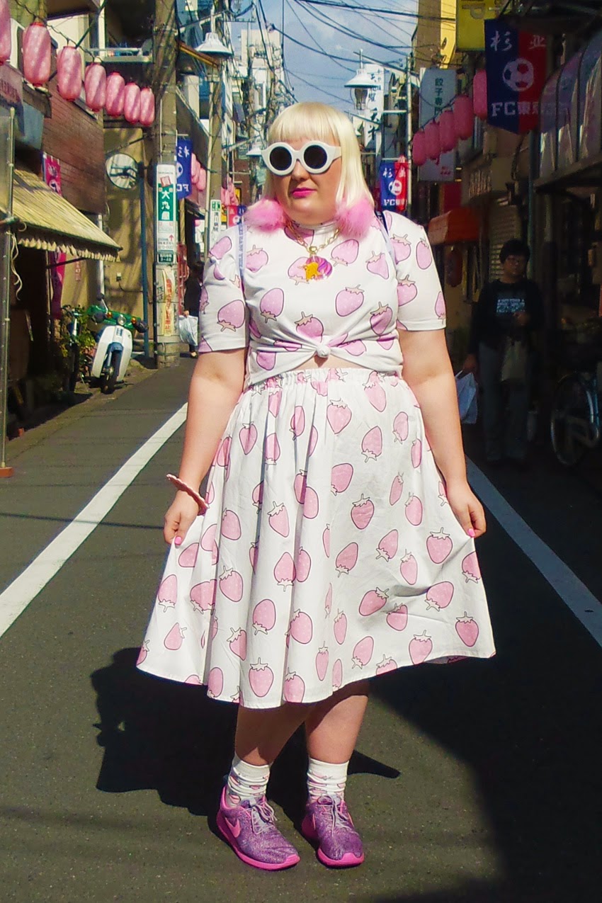 Long time no blog! This was the longest break I've taken in 7 years of blogging. I don't know if you've noticed but I've not really been blogging as often as I once did. Perhaps it's the 7 year itch? I've not been feeling as inspired to blog of late even though I've continued to take photos at events and of my outfits. So much of it is good content that I do really want to share with you but I've just not been able to get the words down and write. Bloggers block, is that a thing? Regardless of all that I am currently back in Tokyo, only 6 months on from my last trip here. If I could keep returning every 6 months then I would definitely be a very happy girl. Especially now that an AMAZING plus size store has opened up in Shibuya 109!!! Shopping for clothes in Tokyo has always been difficult for those above a size 8, even my skinny friends find it difficult as most shops only have one size, yep that's right, one size! So it is very exciting that Punyus, headed by famous Japanese comedian Naomi Watanabe who is famous for her Beyonce spoof performances. Punyus was my very first stop once we landed in Tokyo and I bought the above Strawberry print top and skirt that I had lusted after as soon as I saw them in the newly launched online store.